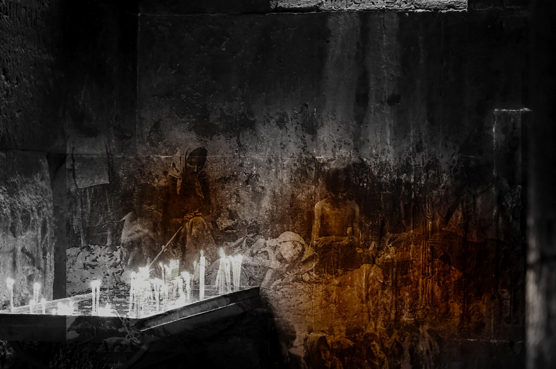 My college project titled 'The Armenian Genocide: 1915' is an exploration of the indelible marks that the massacre has had on the Armenian history and nation, penetrating into the very DNA of the people and earthing its blood-soaked steps into our very roots. As this project played a pivotal role in me constructing and developing my photographic style and visual approach, I experimented with different photographic expressions by blending 'genres' (fiction and non-fiction), using various contextual sources from Armenian documentary photographers to the legends like Duane Michals, Annie Leibovitz and even Edward Munch and referring to my own family's past. I instinctively came up with the idea-or, shall I say, the concept-of this project, without no idea where and how I would navigate with it. With that said, after approximately 1.5 years of constant developing and research, 20+ photoshoots, numerous locations (from Armenian churches to the studios in England) and art and museum visits, I invite you into this three-cycle examination of how history haunts us through space and time, how we are inevitably formed by our historical pasts with the hope of enlightening you (as much as I can) on this matter.